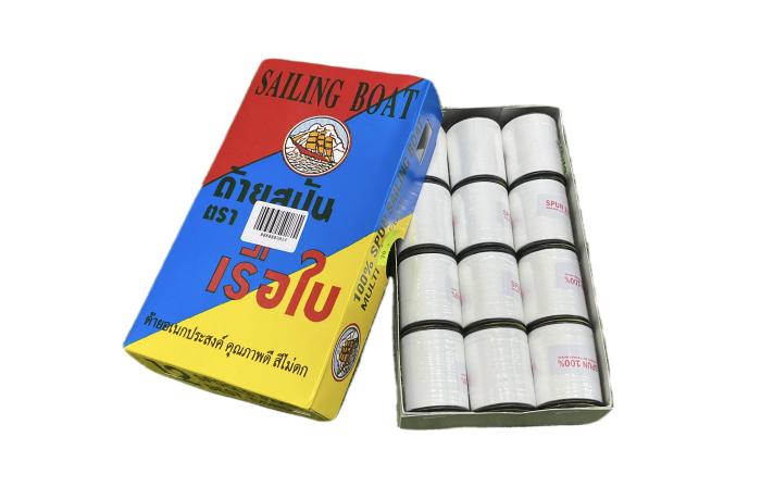 ด้ายสปัน ตราเรือใบ สีขาว အပ်ချည်လုံးအဖြူရောင်