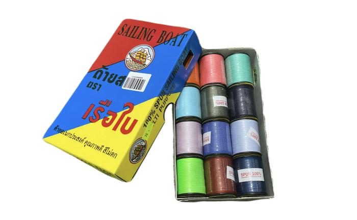 ด้ายสปัน ตรา เรือใบ คละสี จำนวน 12 อัน
