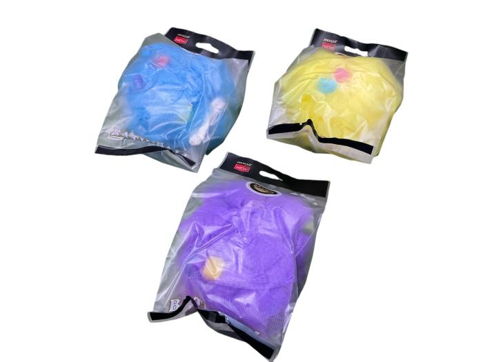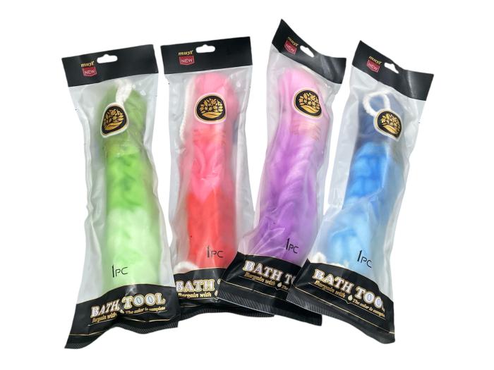 ใยอาบน้ำสีหวานใส่ถุง สีเข้มคละสี แบบยาว จำนวน 1 โหล