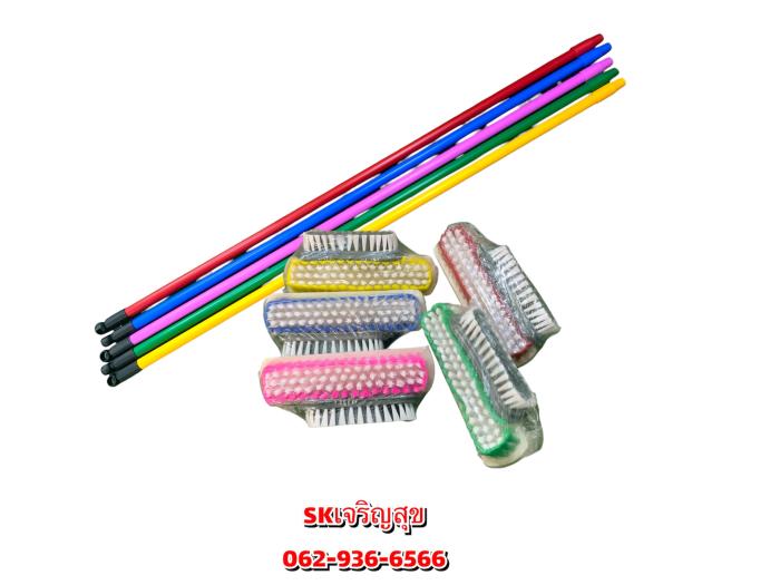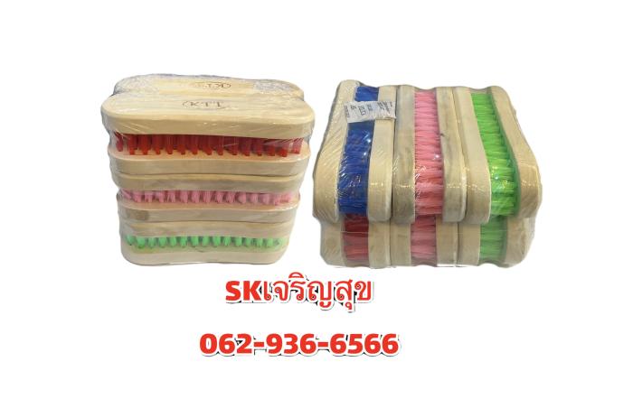 KTTแปรงซักผ้าด้ามไม้ คละสี จำนวน 12 อัน