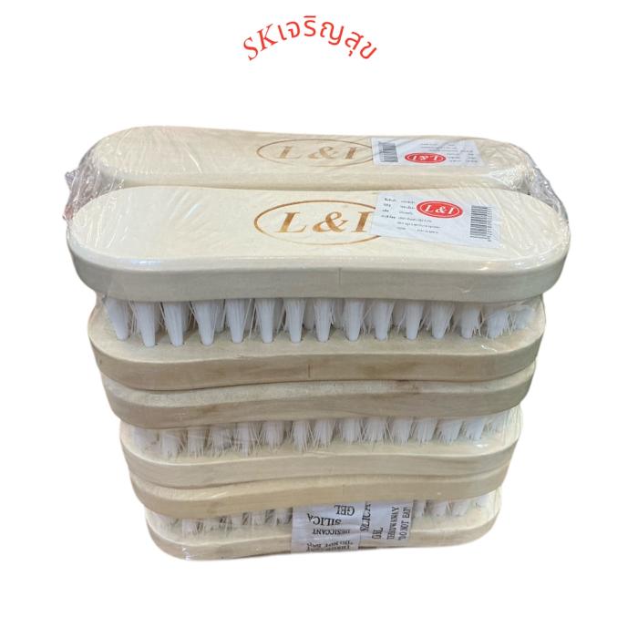L&I แปรงซักผ้าไม้ สีขาว Size กลาง จำนวน 1 โหล