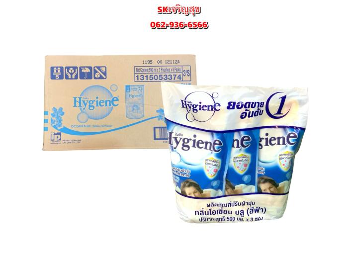 Hygiene ไฮยีน Ocean Blue ผลิตภัณฑ์ปรับผ้านุ่ม 500ml สีฟ้า จำนวน ลัง8แพ็ค