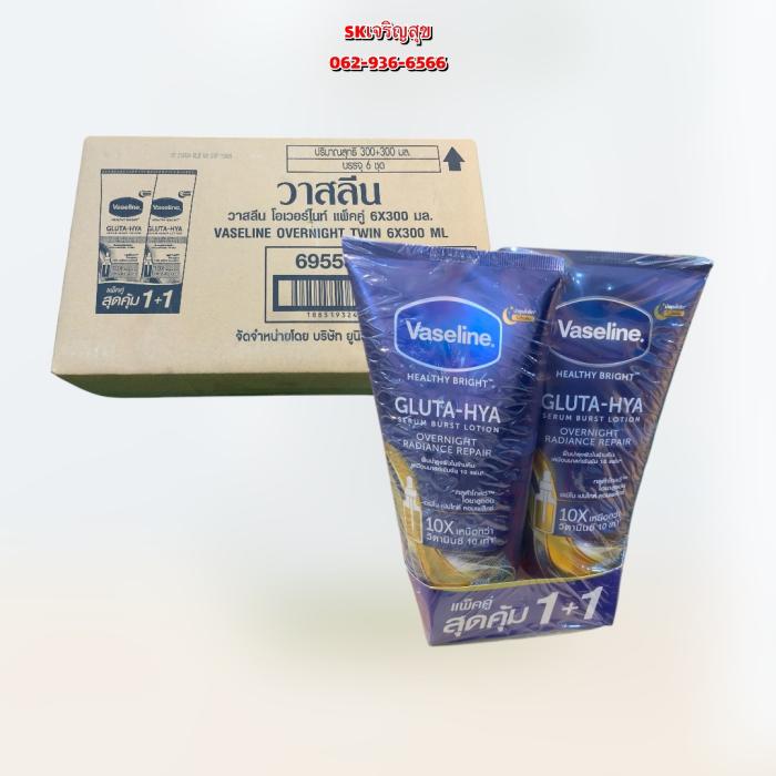 Vaseline Overnight วาสลีน โลชั่น สีฟ้า แพ็คคู่ 300ml จํานวน ลัง1โหล