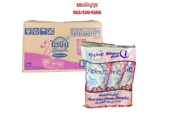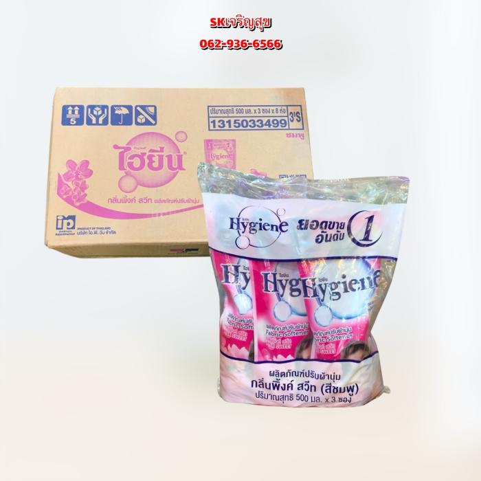 Hygiene ไฮยีน Pink Sweet ผลิตภัณฑ์ปรับผ้านุ่ม 500ml สีชมพู จำนวน ลัง8แพ็ค