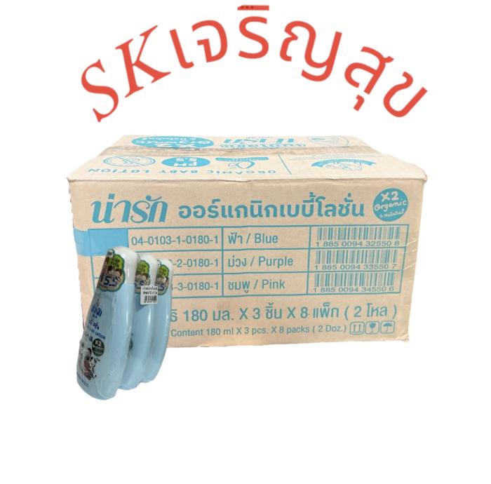 น่ารัก Baby โลชั่น Double Milk 180มล สีฟ้า 1ลัง จำนวน 8 แพ็ค