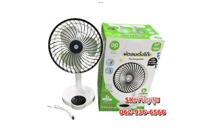 พัดลมตั้งโต๊ะปรับหมุนได้ 5.5w ปรับแรงลม3ระดับ DP7626 สีดำ จำนวน 1 pcs