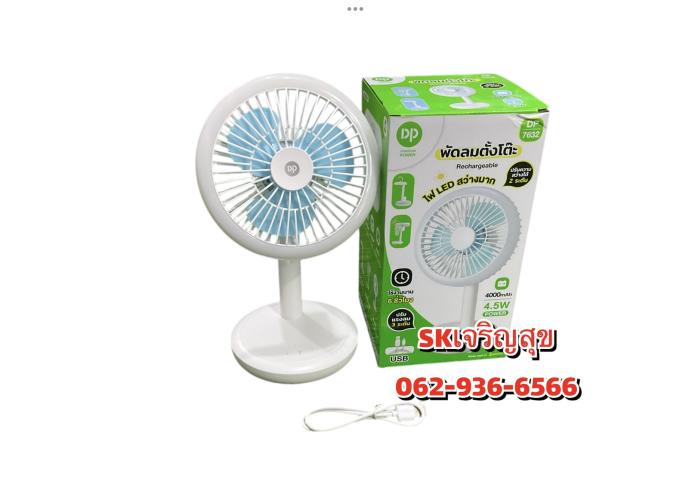 พัดลมตั้งโต๊ะปรับหมุนได้ 5.5w ปรับความสว่ง2ระดับ DP7632 สีขาว จำนวน 1 pcs