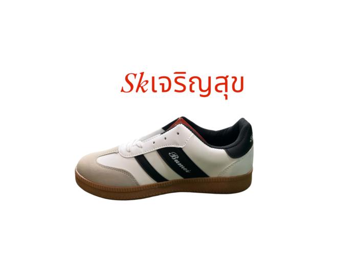 รองเท้าผ้าใบ Bumei สีขาว/ดำ รุ่นM464 ขนาด41-45 จำนวน 6 คู่ ကင်းဗတ်ဖိနပ်အဖြူရောင်နှင့်အမဲရောင်