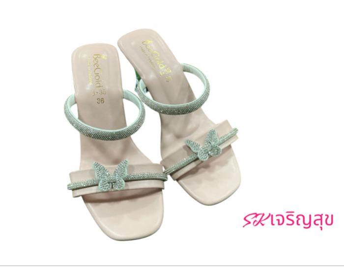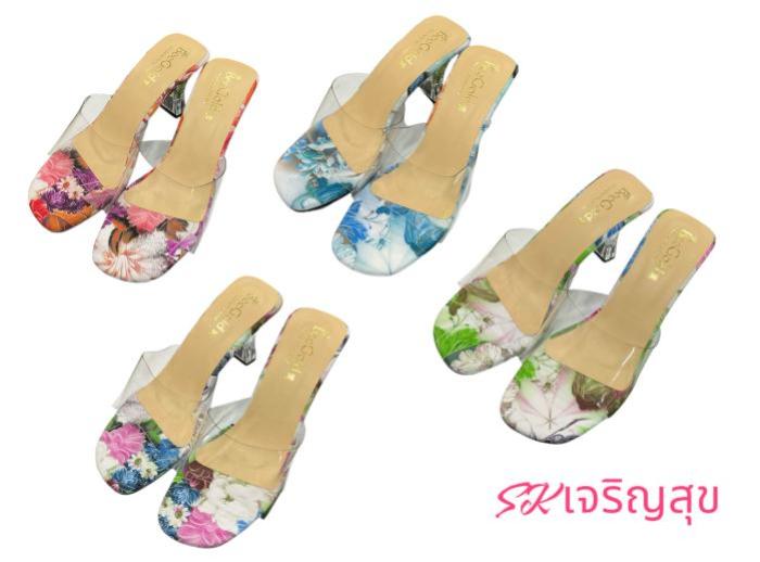 BeeGold รองเท้าส้นสูงลายดอกไม้คละสี Size - 36-40 6คู่